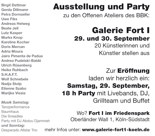 Einladung zu den Offenen Ateliers Köln- Rechtsrheinisch